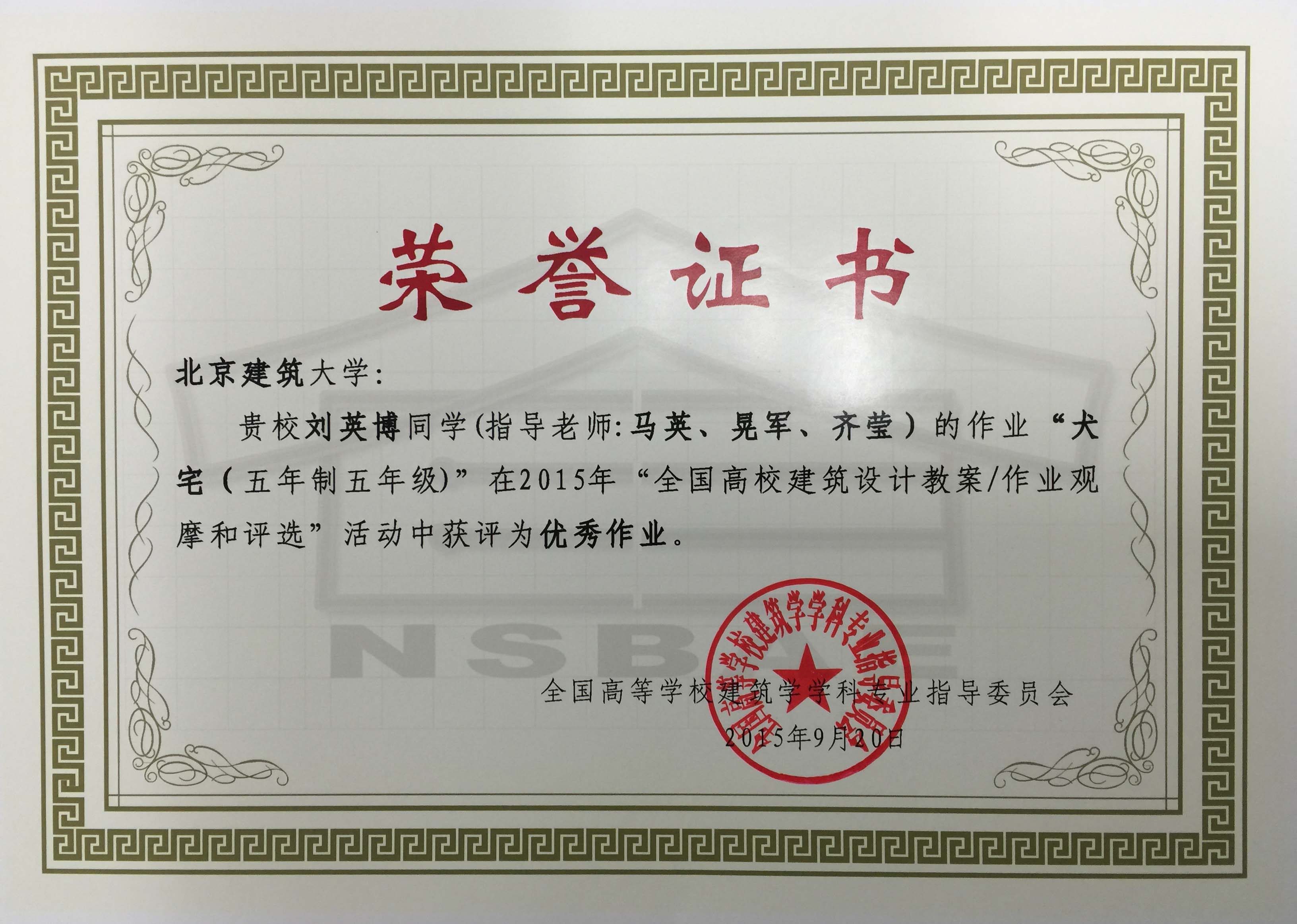 近日,在刚刚结束的昆明理工大学bet36365首页登陆入口举行的2015年全国高等学校建筑学学科专业指导委员会年会上,公布了2014-2015年度“全国高校建筑设计教案/作业观摩和评选”活动优秀教案成果评选结果。我校建筑学院马英教授主持完成的五年级毕业设计教学教案“语境——云南大理古城北水库区域城市更新设计”(参与教师:晁军、齐莹)和王佐副教授主持完成的四年级“城街院——北京旧城街道环境改善和四合院改造设计”(参与教师:林川、孙明、孙克真)两项成果分别荣获最高奖“全国高校建筑设计教案和优秀作业评选”优秀教案奖及优秀作业指导奖。