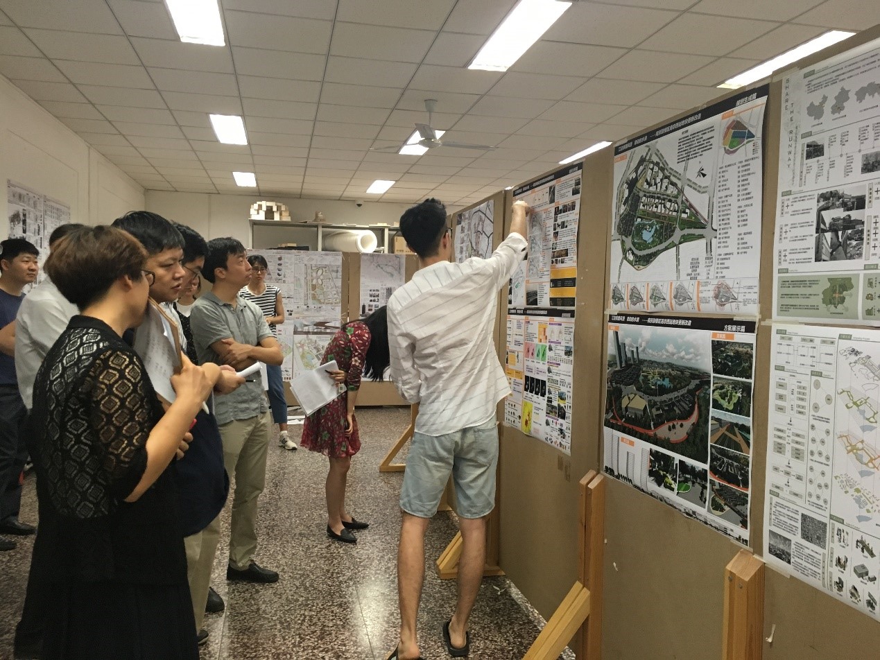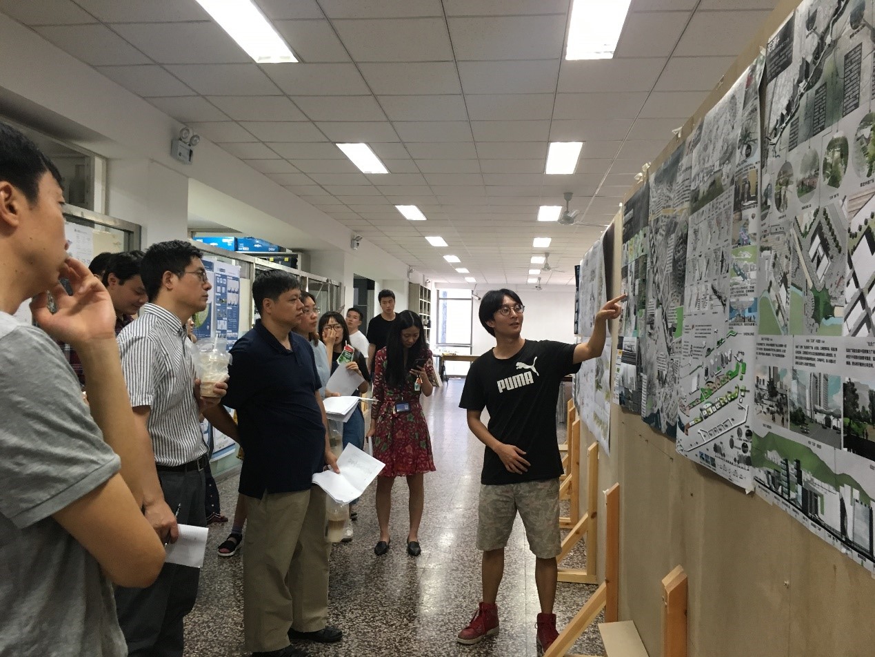 6月21日上午,北京建筑大学bet36365首页登陆入口2014级城市规划专业城市规划设计(四)课程作业终期评图在西城校区图书馆二层中庭举办。城乡规划设计(四)的课程设计以城乡规划专指委城市设计竞赛任务主题“智慧、包容、复兴”为题,学生2 人一组选择10-30ha 的城乡用地。通过对实际地段的设计,进一步掌握城市设计相关理论和设计方法,熟悉城市设计过程,培养学生从城市设计角度发现问题、分析问题、解决问题的能力。